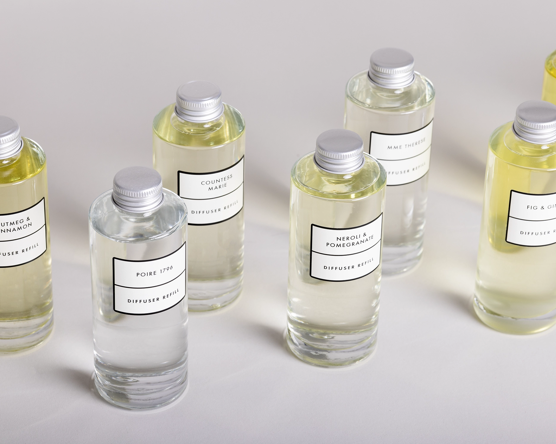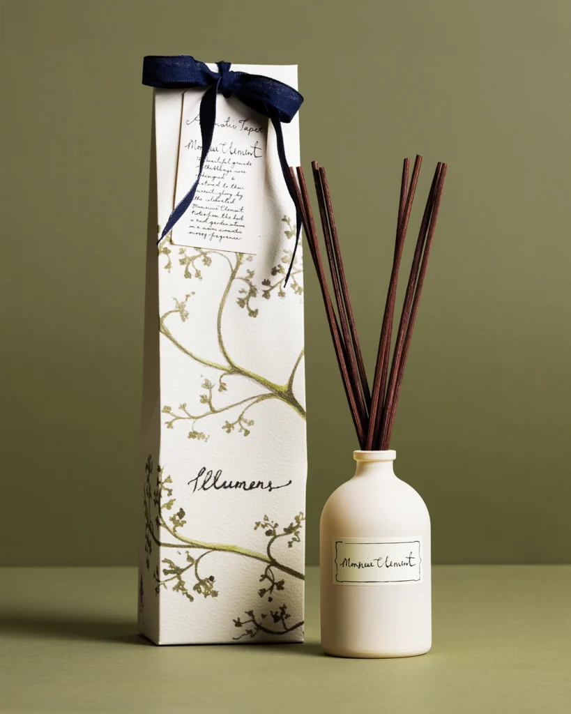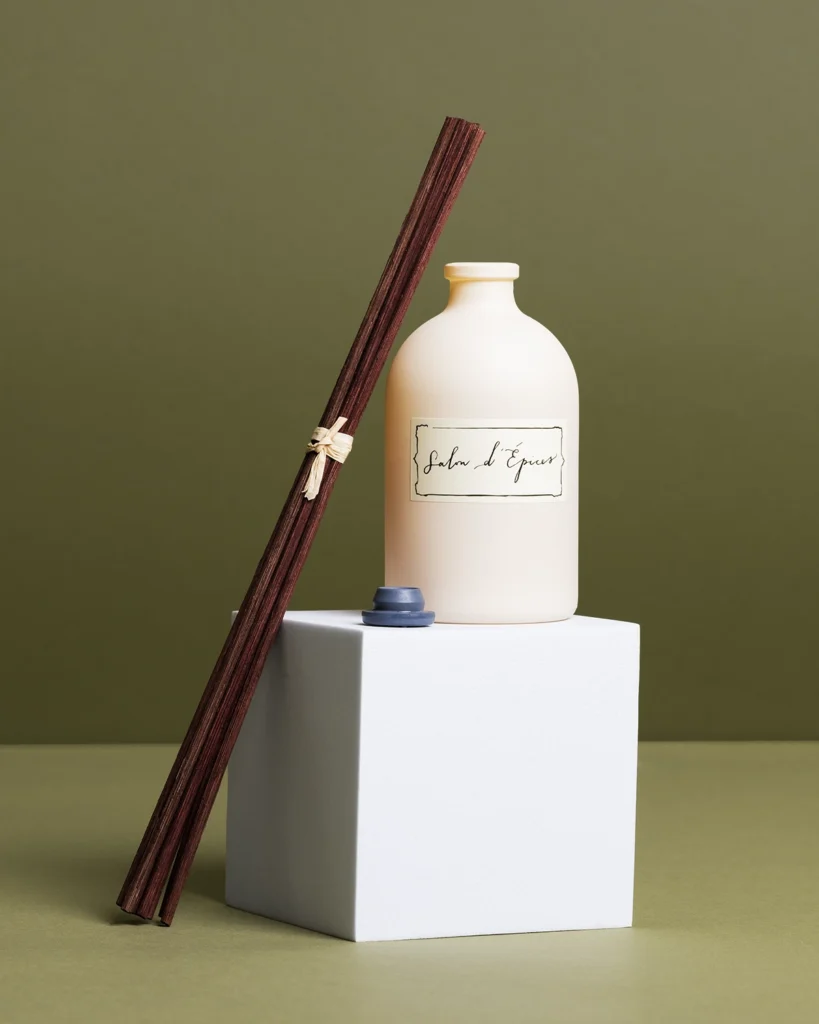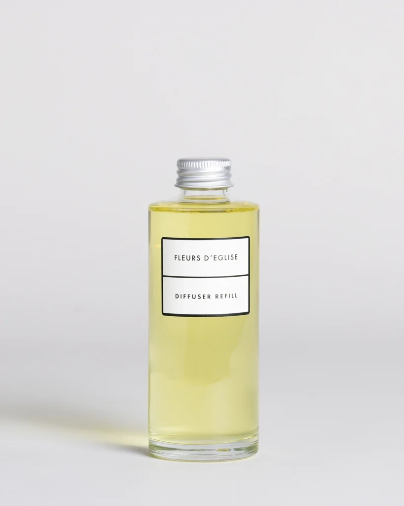 The hand‑painted packaging features an illustration of ‘fumaria officinalis’, with tiny pen‑and‑ink insects, reminiscent of a sketchbook from a Grand Tour travel journal. Created by a Suffolk artist, the artwork reflects the collection’s gentle, historic character. Some fragrances echo the abbey’s history, while others capture the natural beauty and atmosphere of rural France.